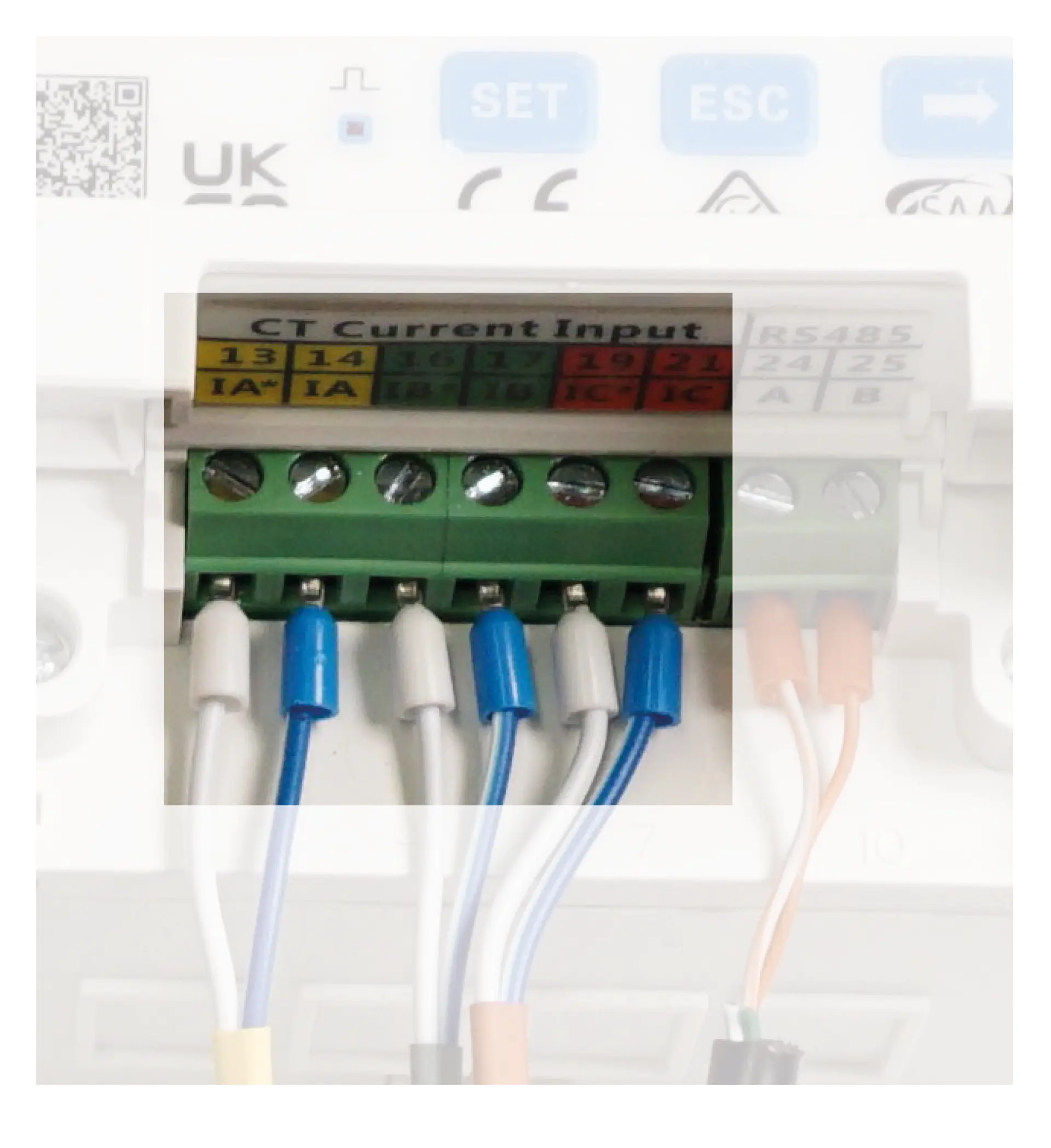 | Strommessung per CT-Klemme | 13 | Ia* (weiß) | gelb | - | - |
