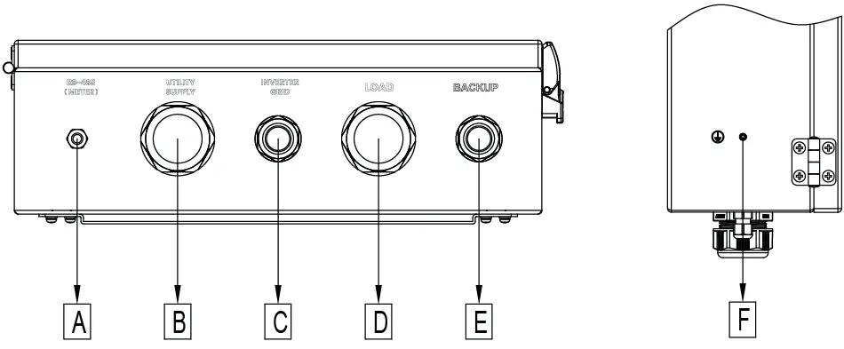 B | Anschluss Netz | E | Anschluss Backup des Wechselrichters |