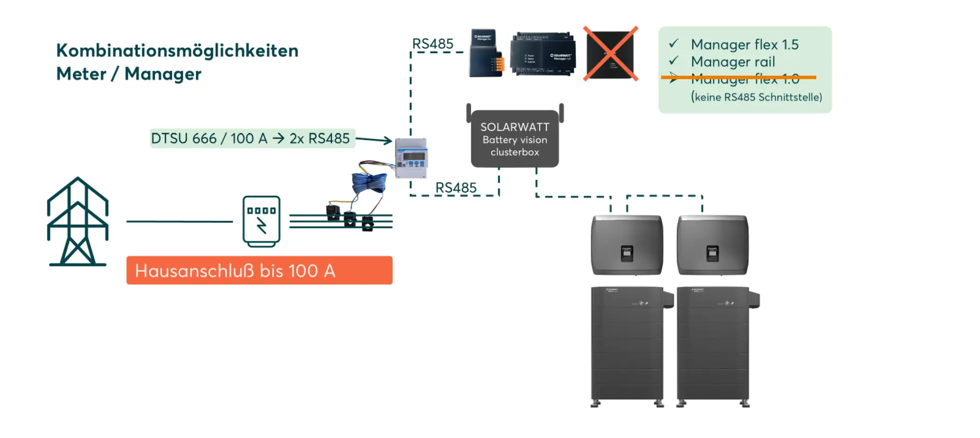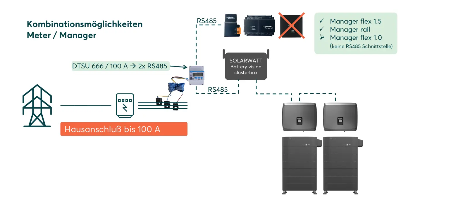 Abb. 1 Verbindung von Clusterbox und Manager via DTSU 666 duo RS485 CT 100A