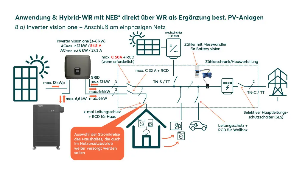 Hybrid-WR (Netzersatzbetrieb über WR, Ergänzung best. PV-Anlage)