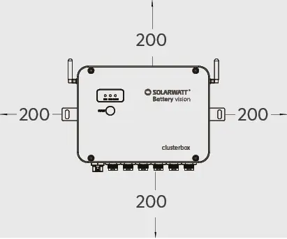 - Damit die Kühlluft ungehindert aus dem Gerät entweichen kann, darf der Abstand zu benachbarten Geräten nicht weniger als 30 cm betragen. Auch über dem Gehäuse muss ein Freiraum von mindestens 30 cm (Inverter vision one) oder 50 cm (Inverter vision three) vorhanden sein.