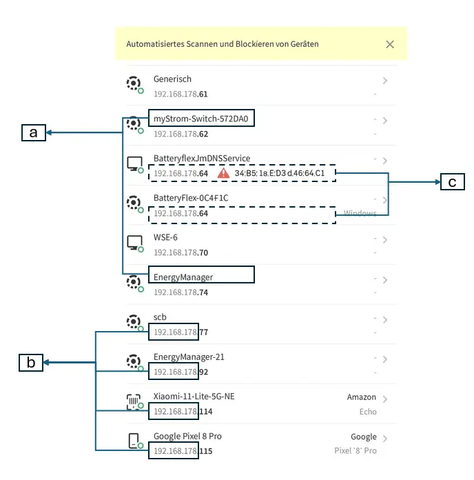 c) Doppelte MAC-Adresse bei zwei Battery flex-Geräten