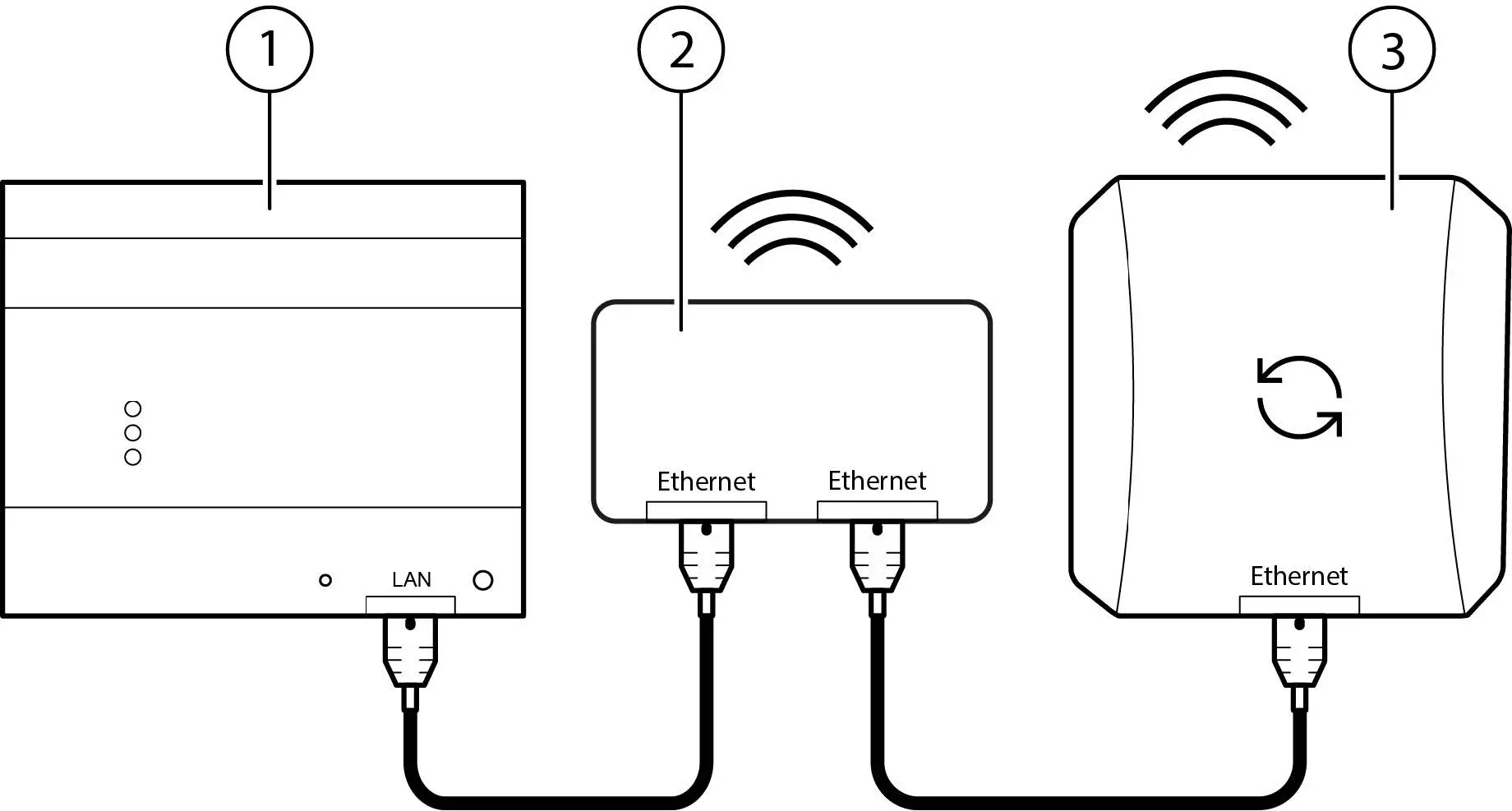 - Internetmodul, Router und Manager gemäß Abbildung verbinden