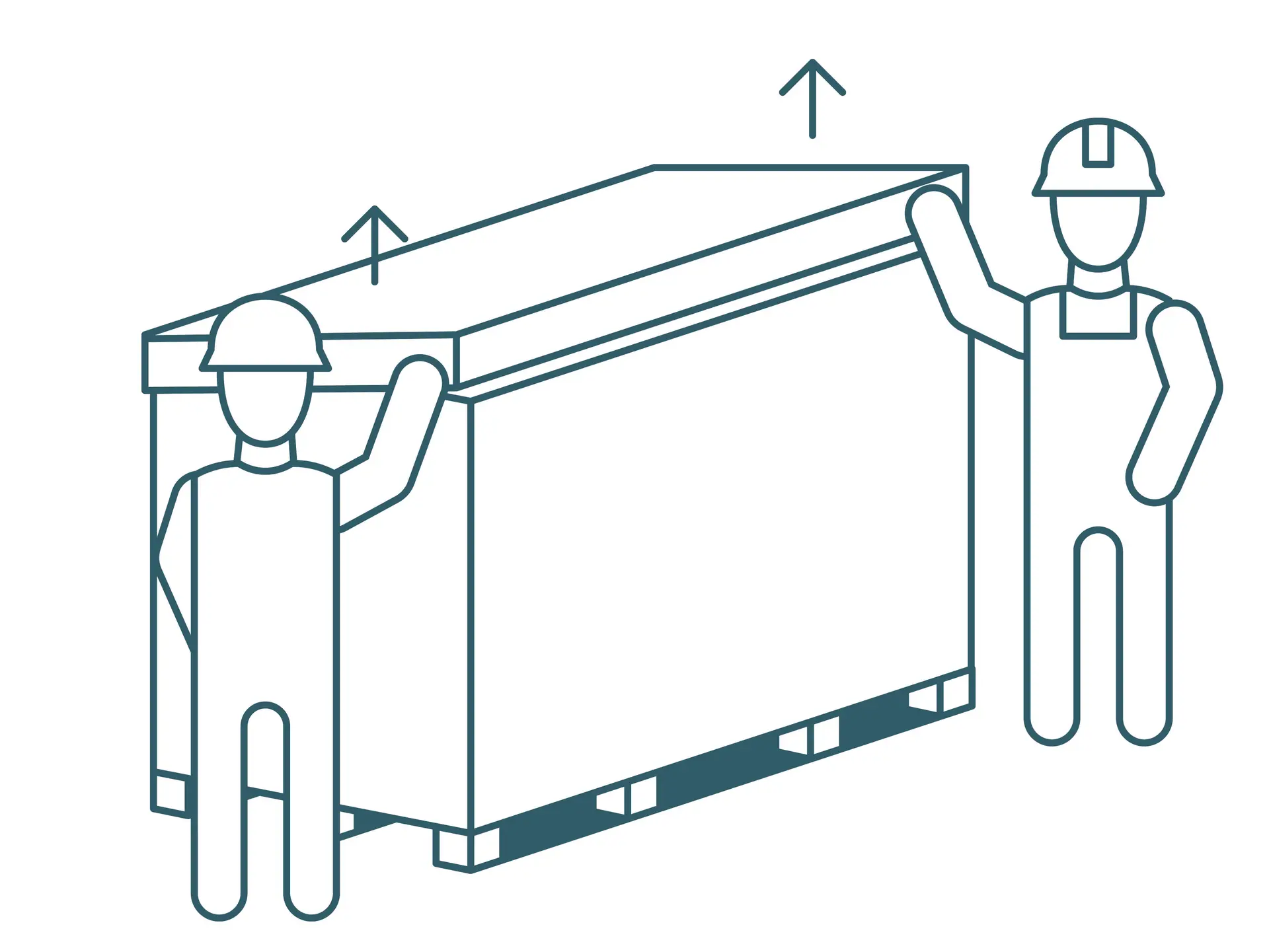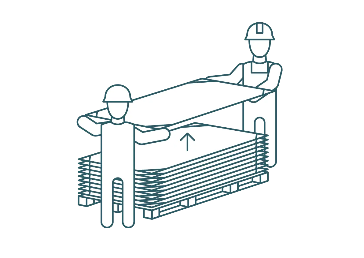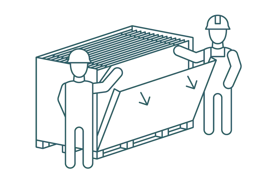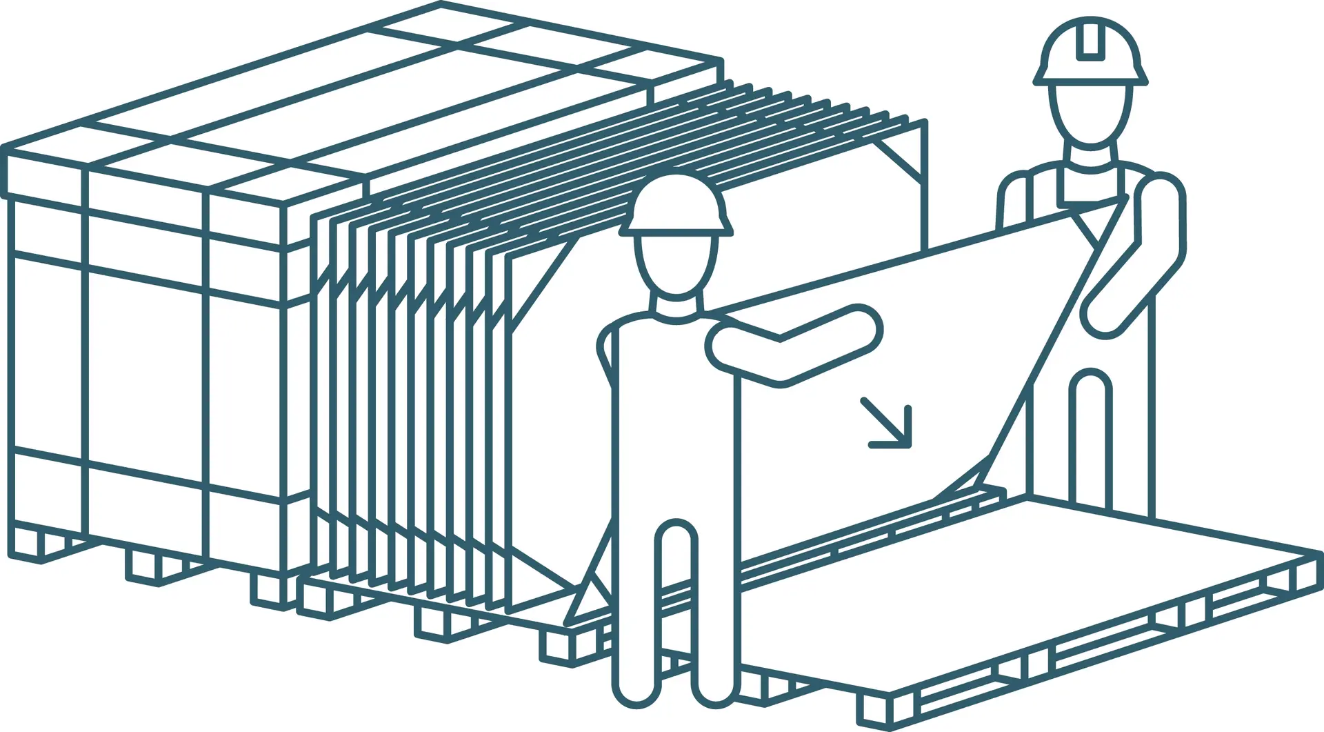 - Die angelieferten Paletten auf einer festen und ebenen Unterlage abstellen