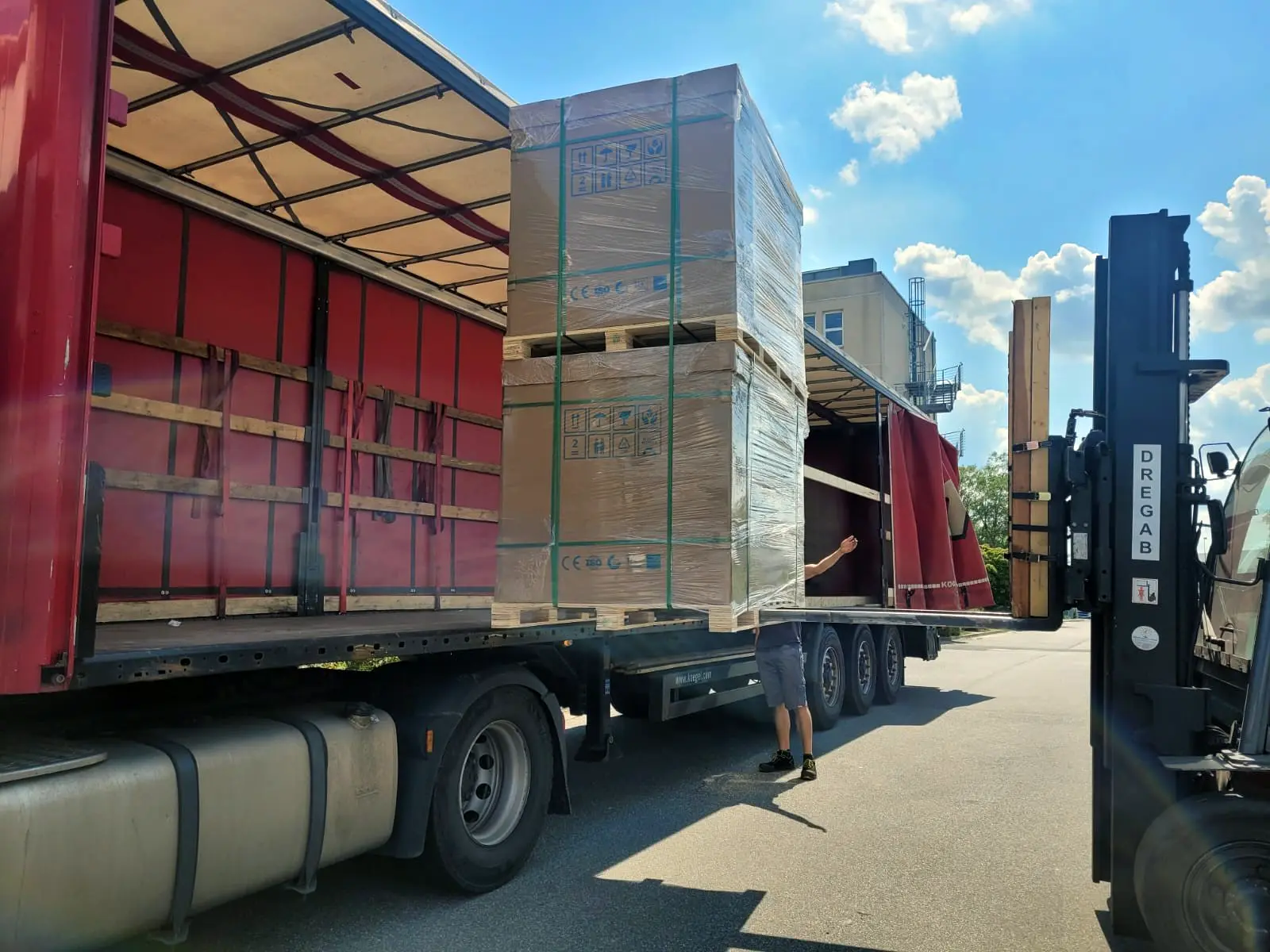 - Geeigneten Gabelstapler für die Entladung zur Verfügung stellen und die Kapazitäten des Gabelstaplers beachten