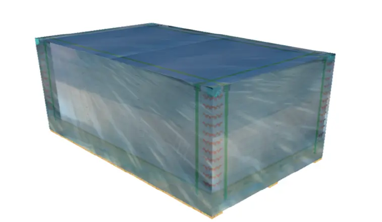 - Modulstapel mit Stretch-Folie straff umwickeln: bei einer Anzahl von 30 Modulen etwa 35 Wicklungen. Bei geringerer Modulanzahl entsprechend weniger Umwicklungen vornehmen.