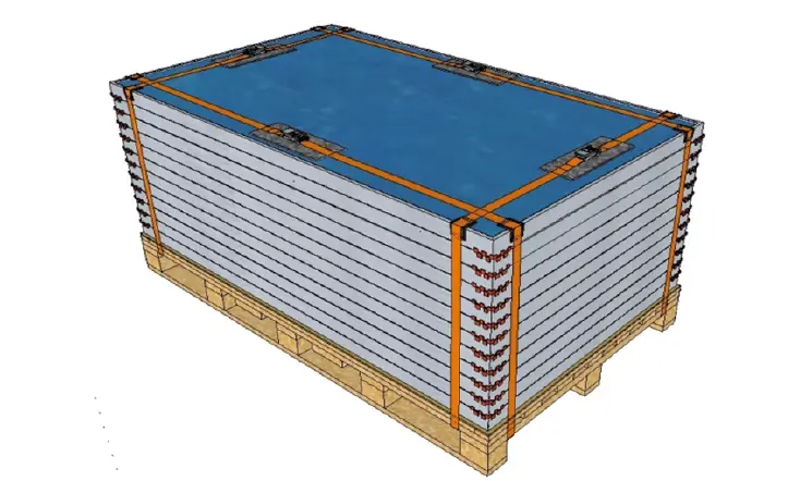 Stapeln und verpacken Sie die Module entsprechend dieser Anleitung.