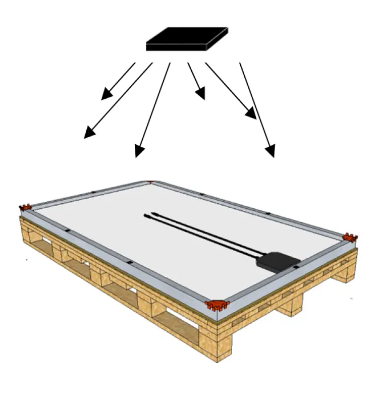 - Modul mit Vorderseite (Sonnenseite) zur Palette auf die Pappe legen: gleichmäßigen, umlaufenden Rand beachten!