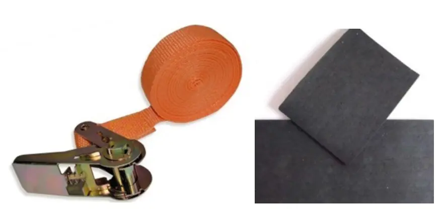 Oder Alternativbänder: Spanngurt mit Metallratsche und Schutzmatte, 4 Stück, inkl. Verschluss und Schutzunterlagen