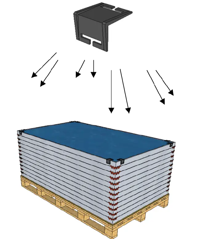 Nur Ecken ohne sichtbare Vorschädigung verwenden! Verwenden Sie die SOLARWATT Stapelecken, diese garantieren den Schutz gegen Verrutschen der Module auf der Palette.