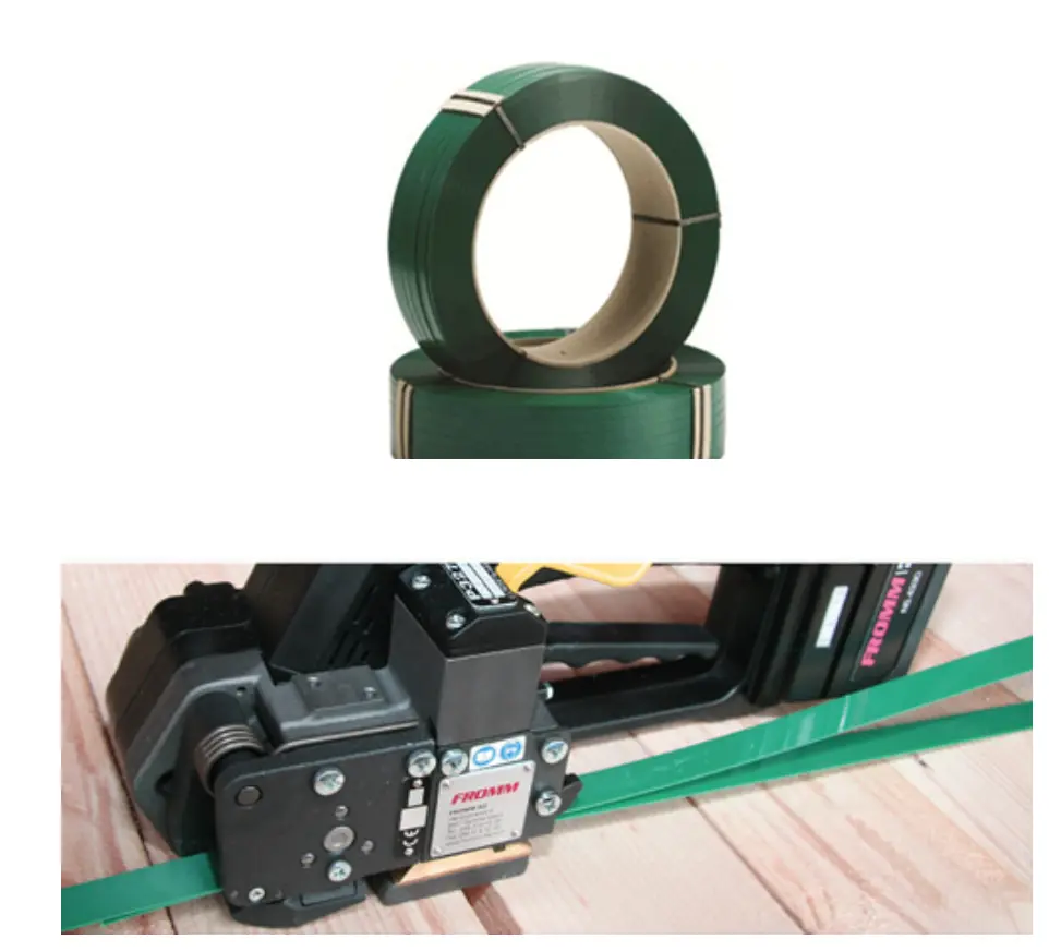 Mögliches Material: Brühninghaus Polyester Umreifungsband 12,5x0,7; Kempack PET Umreifungsband 12,5x0,7;15,5x07 und größer, Kempack KEMAtex, 16 mm Breite)