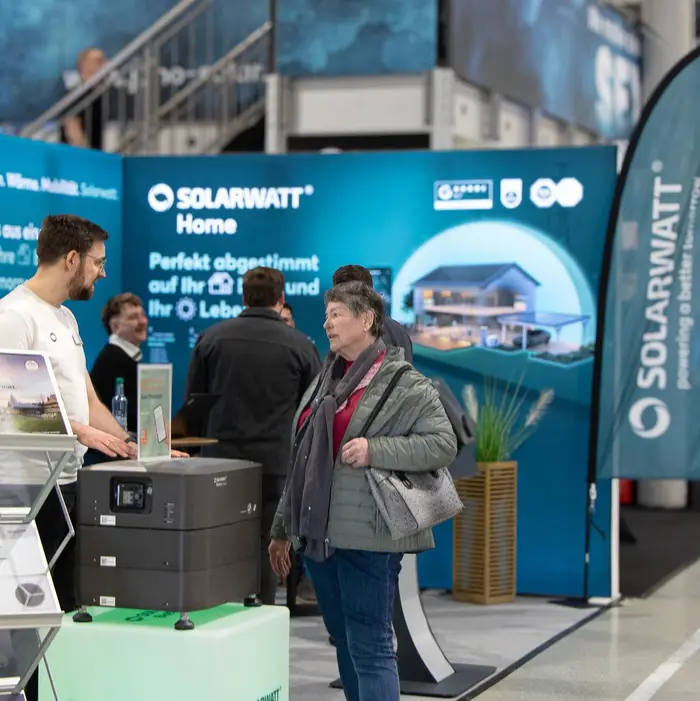 Solarwatt ist 2026 wieder auf verschiedenen Messen in Deutschland vertreten. Unsere Experten zeigen aktuelle Entwicklungen rund um PV-Anlagen, Speicher, Wärmepumpen, Wallboxen und Energiemanagement.